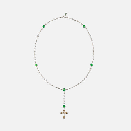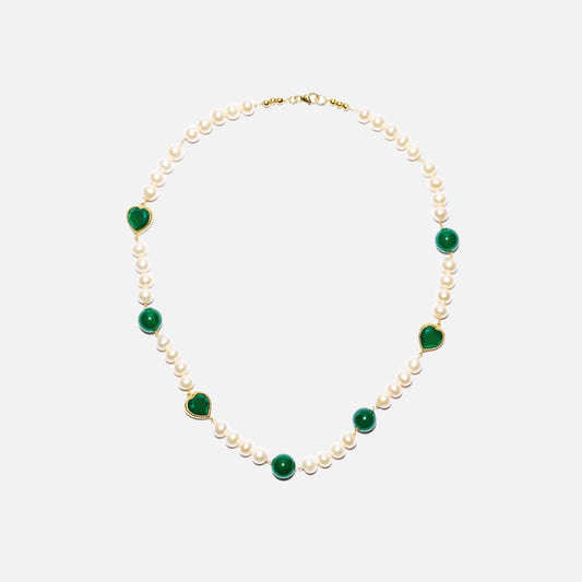 18k gold plated Freshwater pearl necklace Green onyx stones shaped into hearts and spheres ...