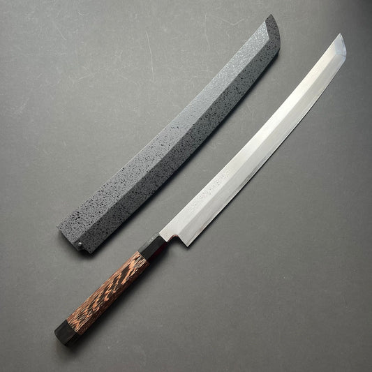Some more premium Sanjo knives with a classic look and excellent blade detailing. SHAPE: Gyuto....