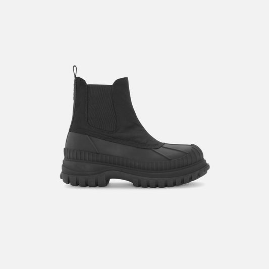 Chelsea boot silhouette Water-repellant recycled polyester and rubber upper Polyester lining Black webbing Heel tab ...