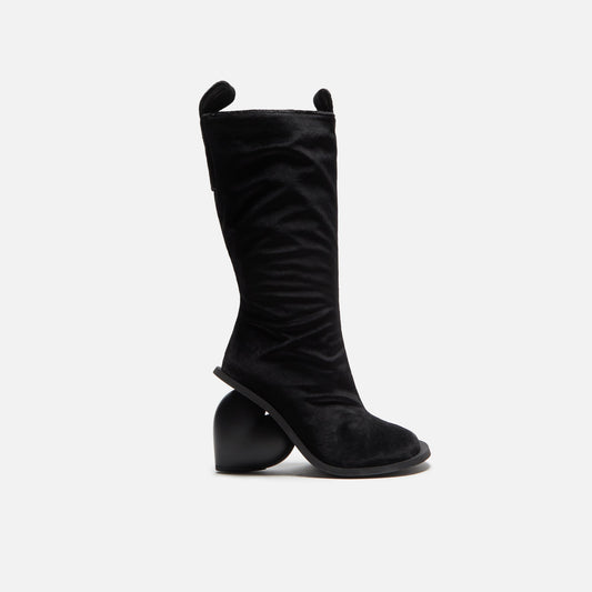 Love boot silhouette Velvet upper Round toe Tongue and heel pull Zip closure on ankle 3D...