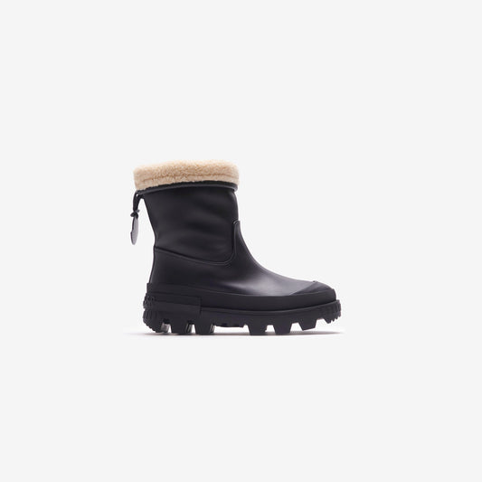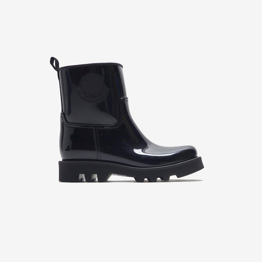 Ginette Rain Boots silhouette PVC upper Round toe Moncler branding on ankle Heel pull with...