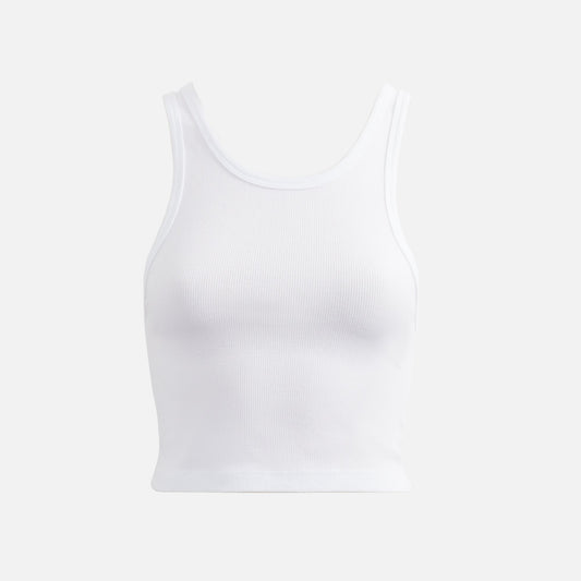Cotton blend fabric Semi scoop neck Wide shoulder straps Cropped fit Style: ccw131364-wht Color: White Material:...
