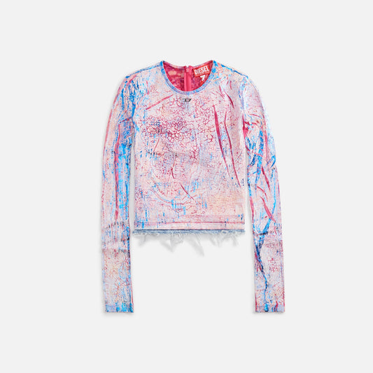Cotton blend fabric Zipper closure on back Round neckline All-over cracked effect pattern Frayed hem...