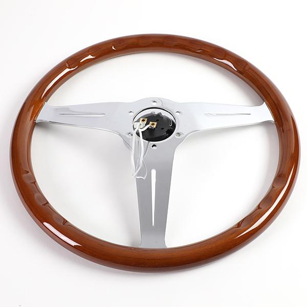 15 in. Vintage Style 2 in. Deep Dish Stainless Steel Spokes Wood Grain Steering Wheel