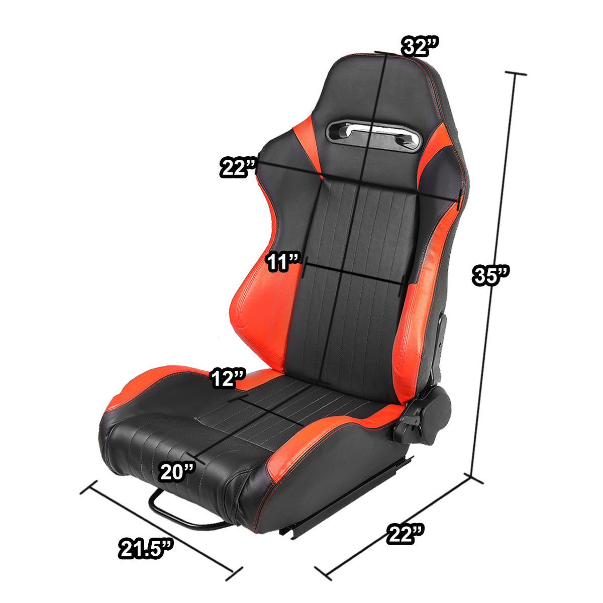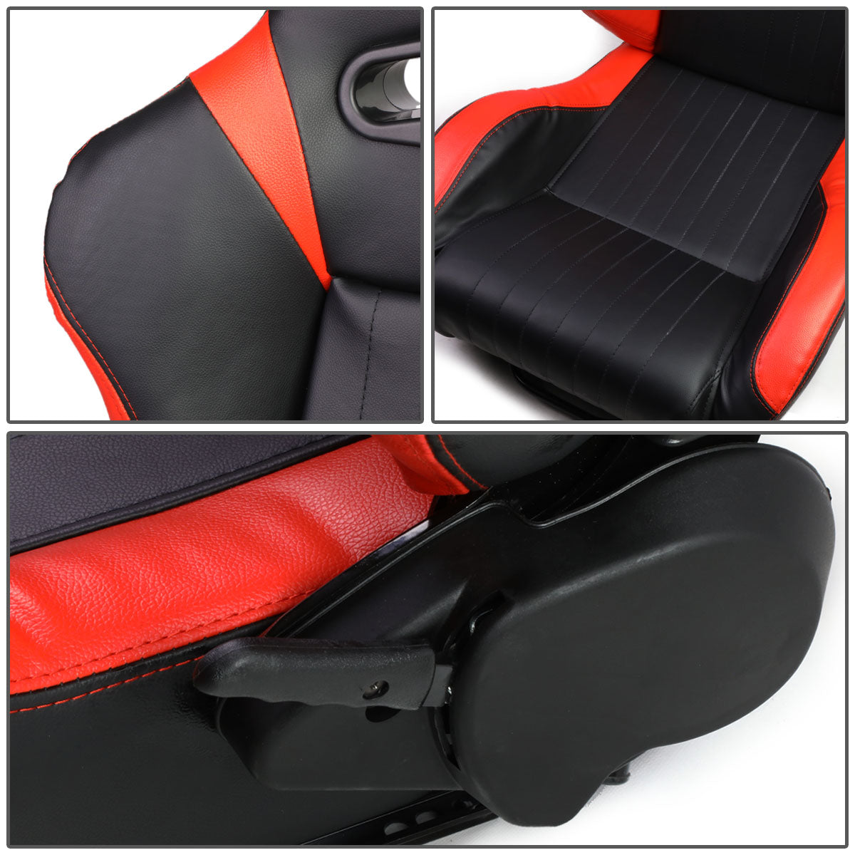 Racing Seats - Reclinable - Vertical Stitch - PVC Leather - Pair