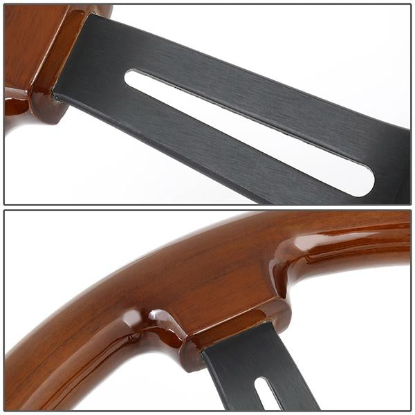350mm 3 in. Deep Dish Colored Wood Grip Steering Wheel - RST-018BR-BK