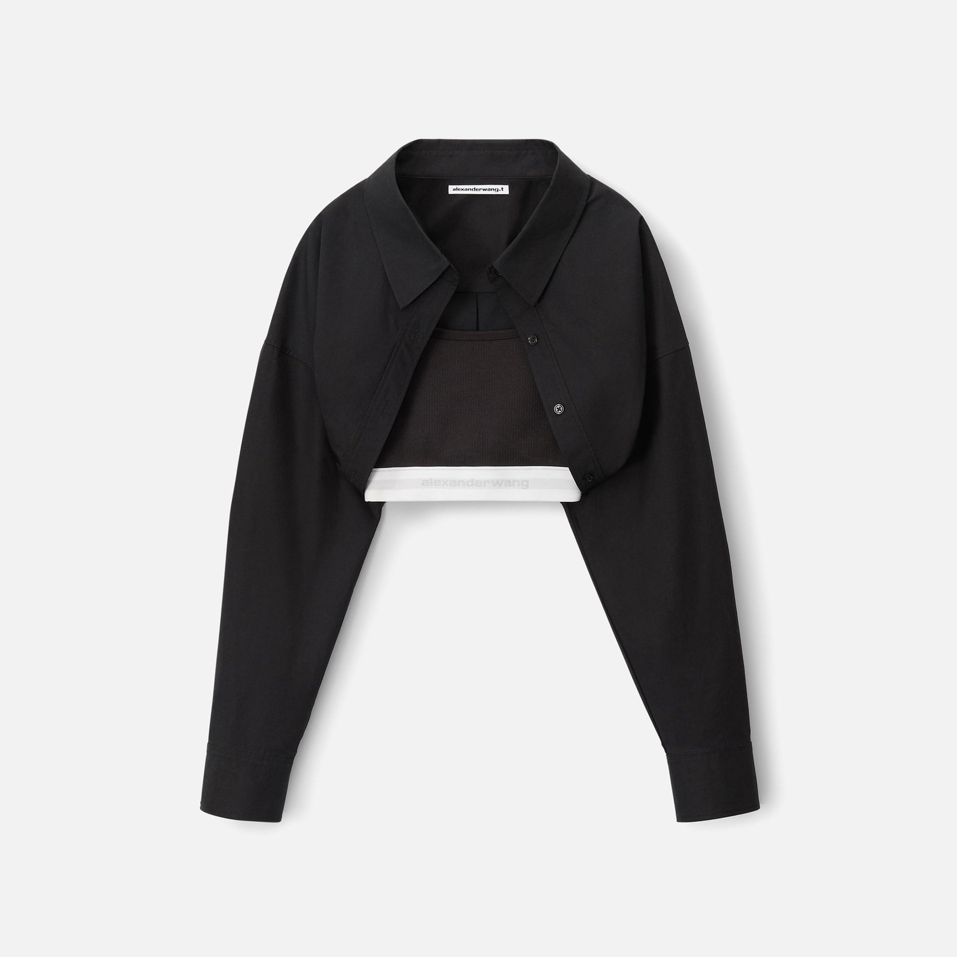 T by Alexander Wang Tucked Shirt Bolero and Logo Elastic Top - Black