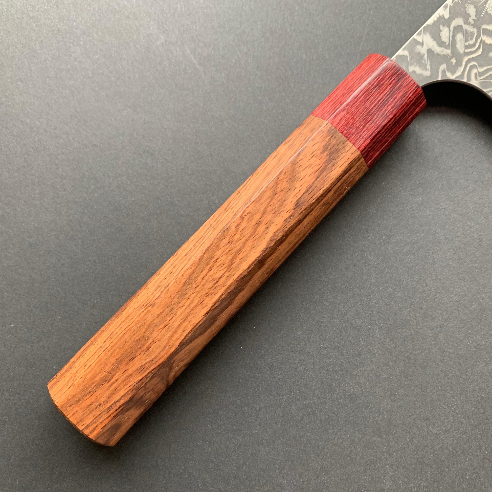 HANDLE: Honduras Rosewood Wa Handle with Red Pakkawood collar.