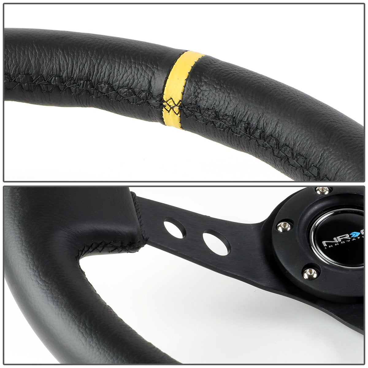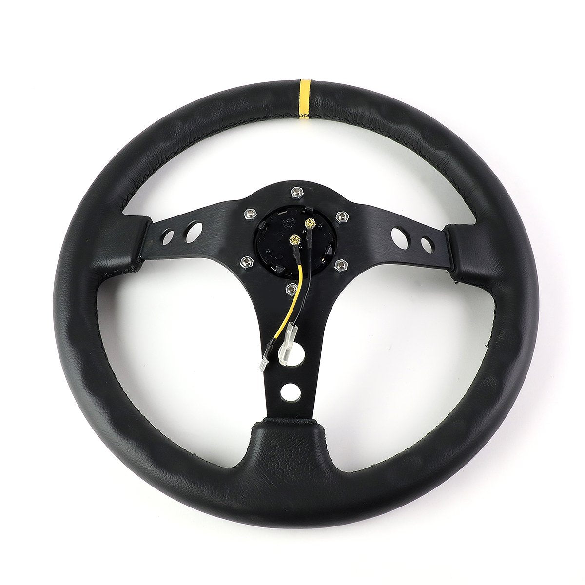 350mm 3 in. Deep Dish Leather Grip Steering Wheel - RST-006BK-Y