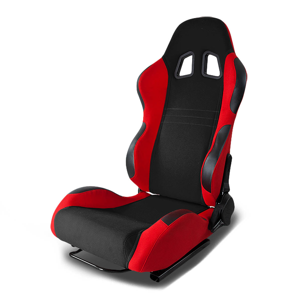 Left / Driver Side Reclinable Fabric Cloth+Leather Racing Seat w/Universal Slider Red/Black