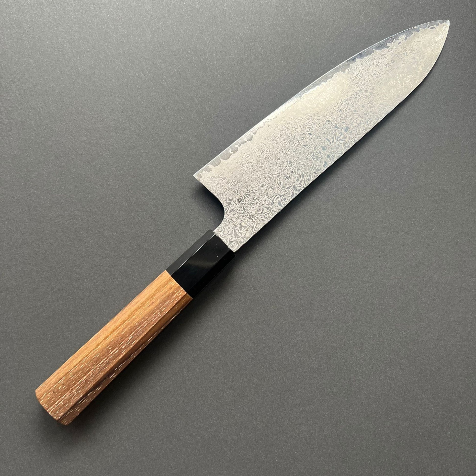 Santoku knife, Ginsan with Stainless Steel cladding, Damascus finish, Ginyo range - Hatsukokoro