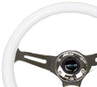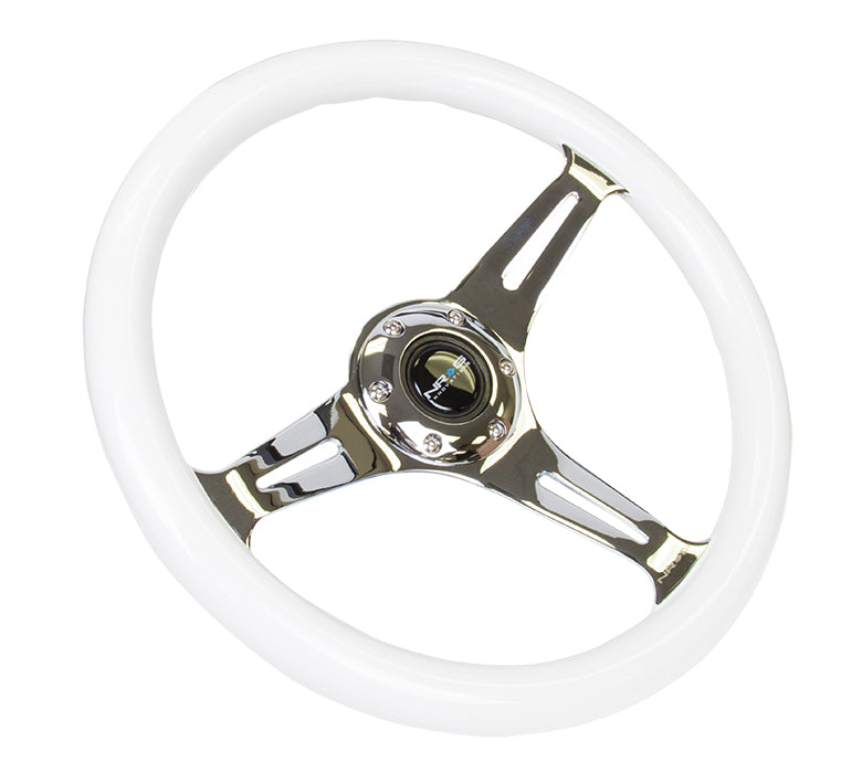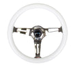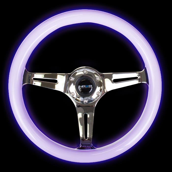 Smooth Classic White Wood Grain Wheel, Glowing Purple, 350mm, Chrome Finish 3 Spoke Center