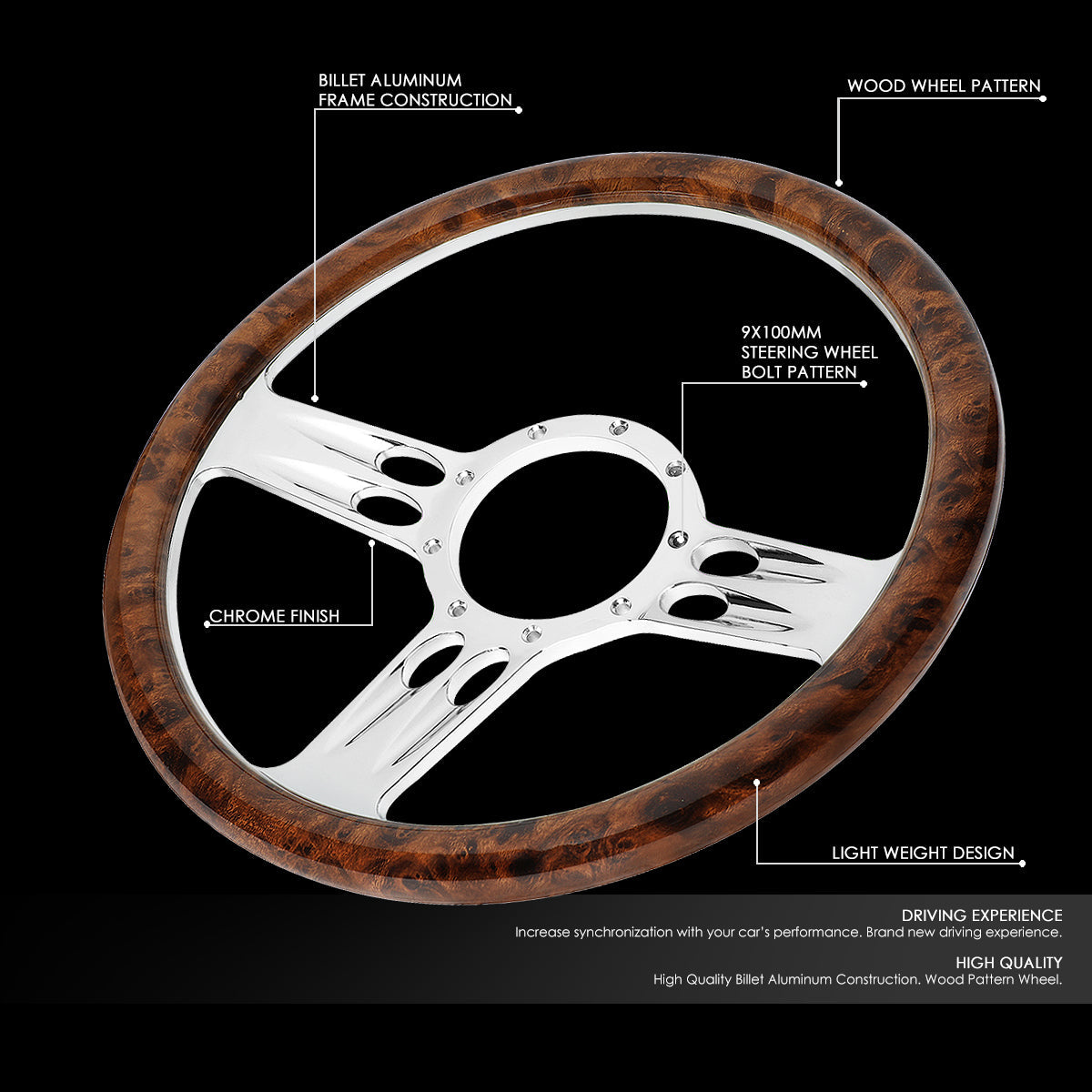 343mm 2.25 in. Deep Dish Banjo Style Wood Grain Grip Steering Wheel