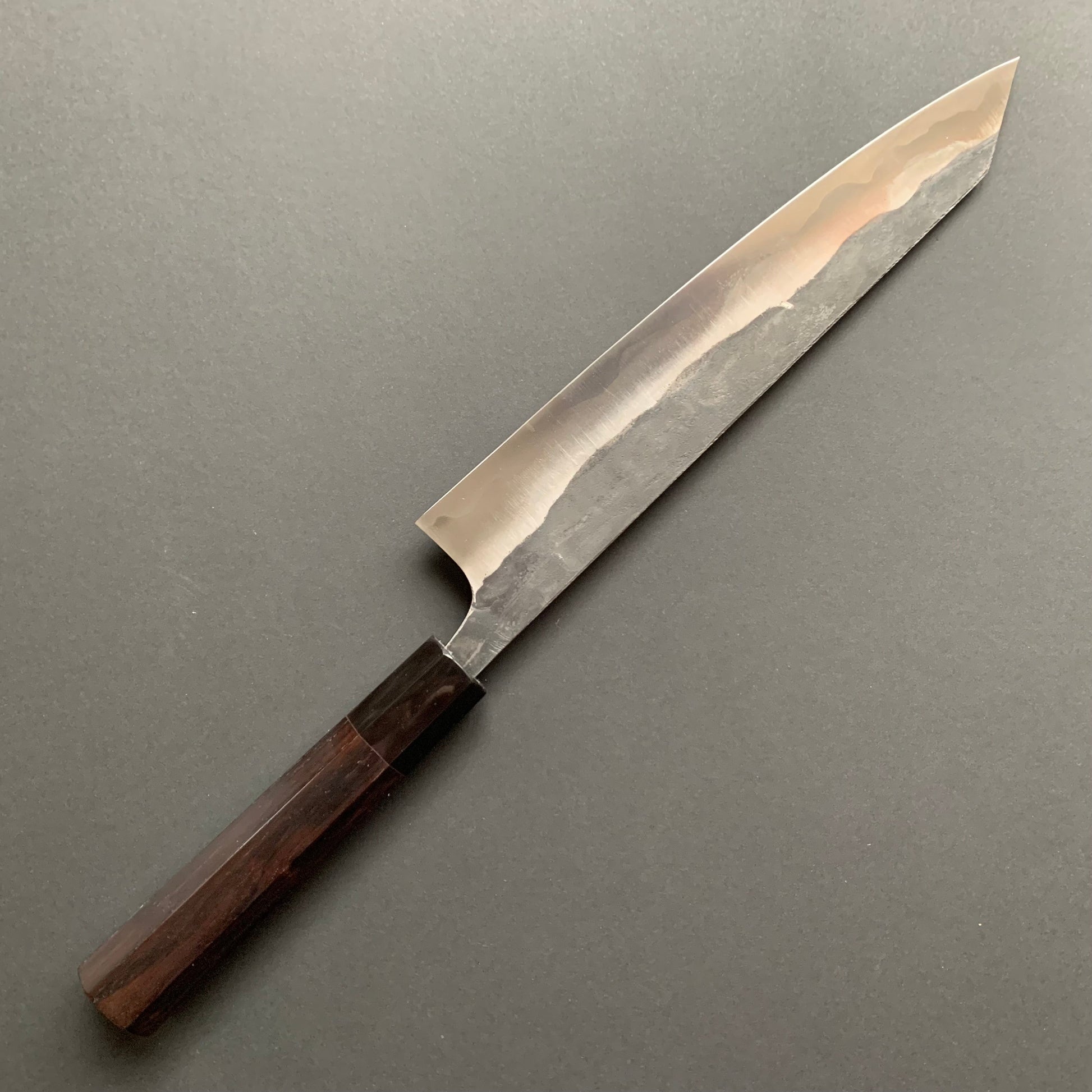 Sujihiki knife, ATS34 steel with stainless steel cladding, Kurouchi finish - Manaka Kisuke