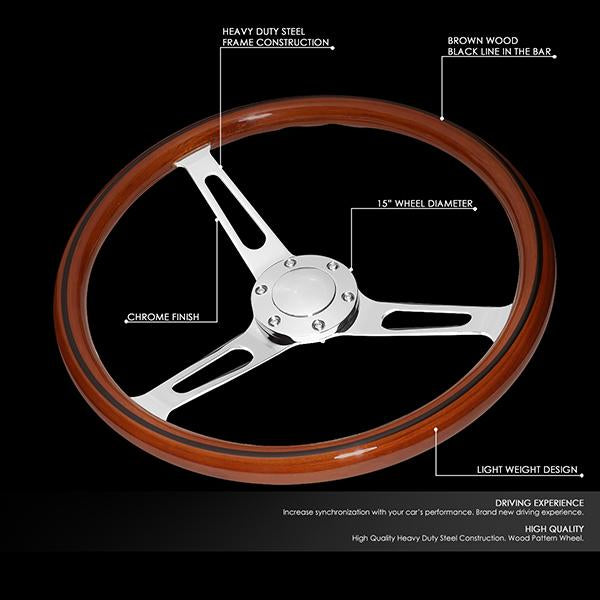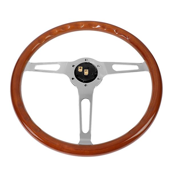 15 in. Vintage Style Wood Grain Steering Wheel - Stainless Steel Spokes
